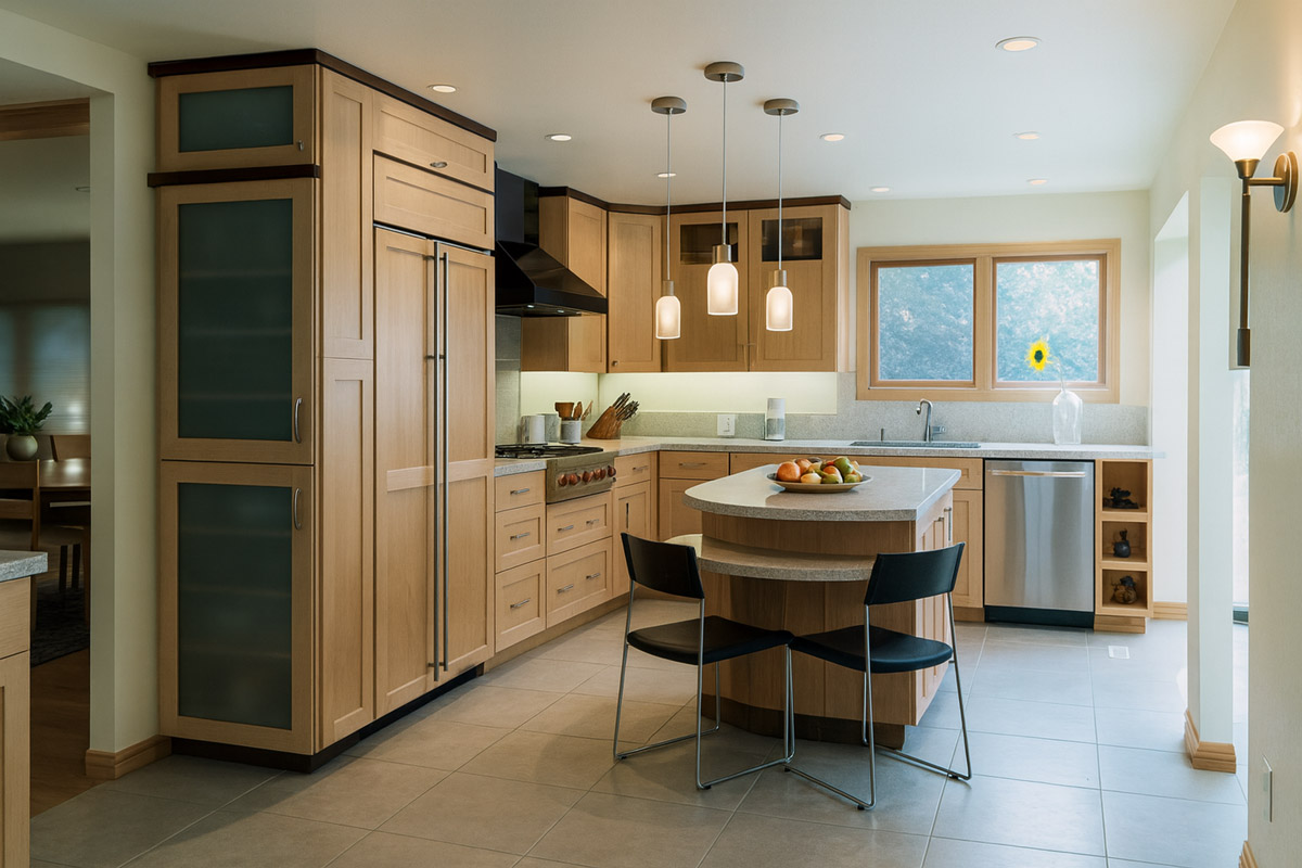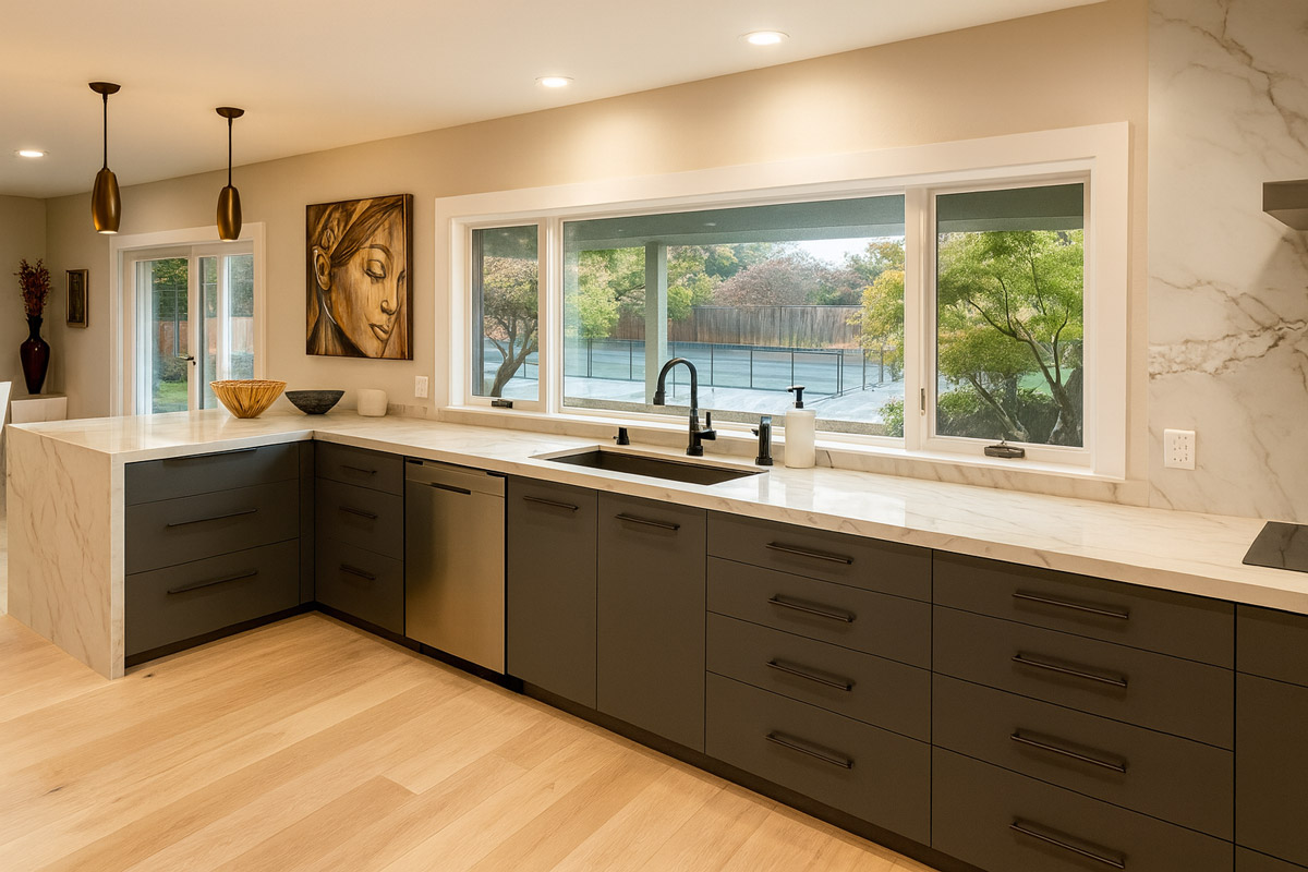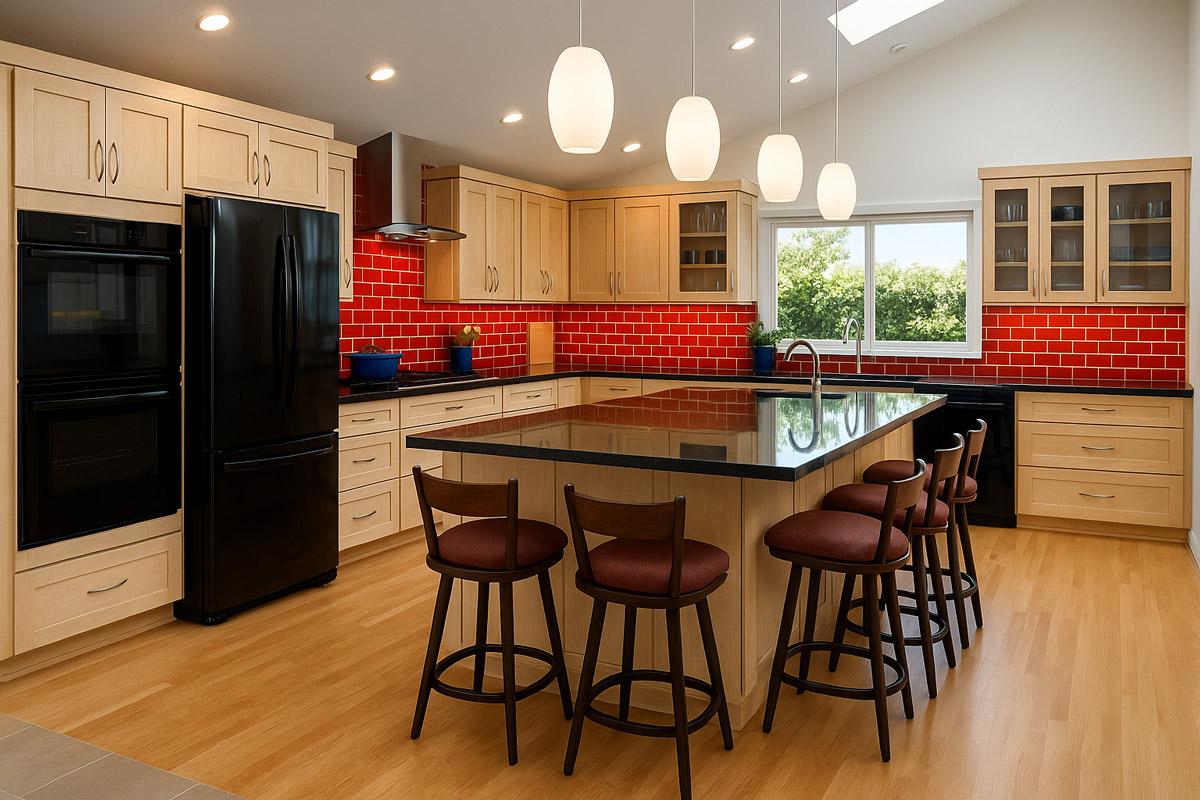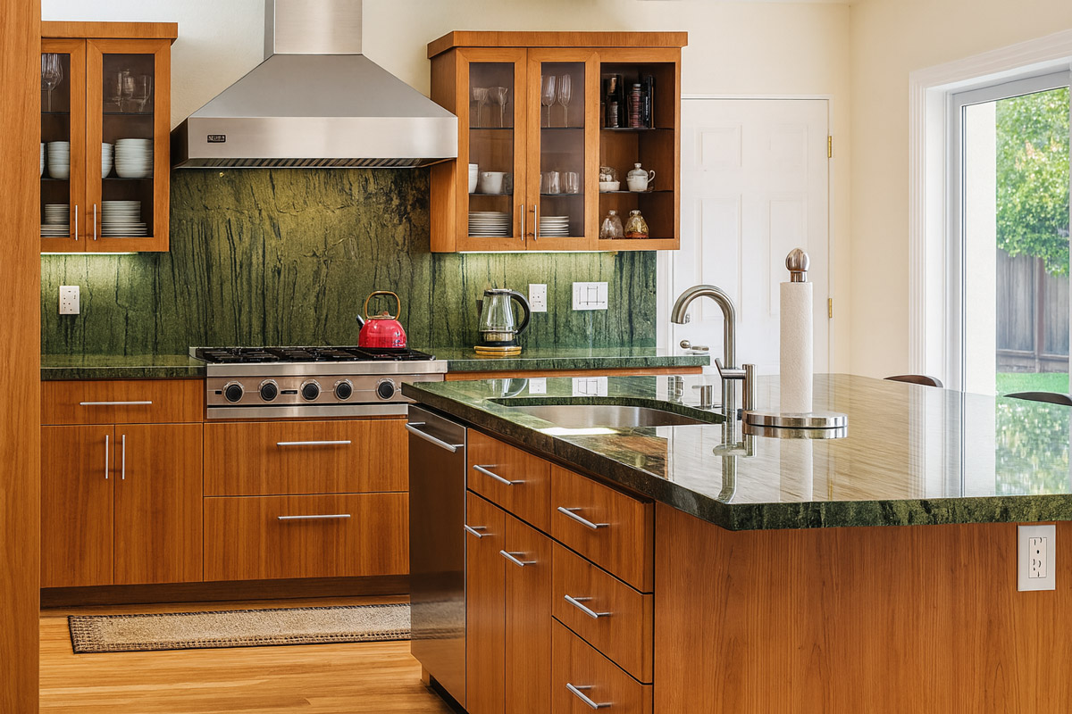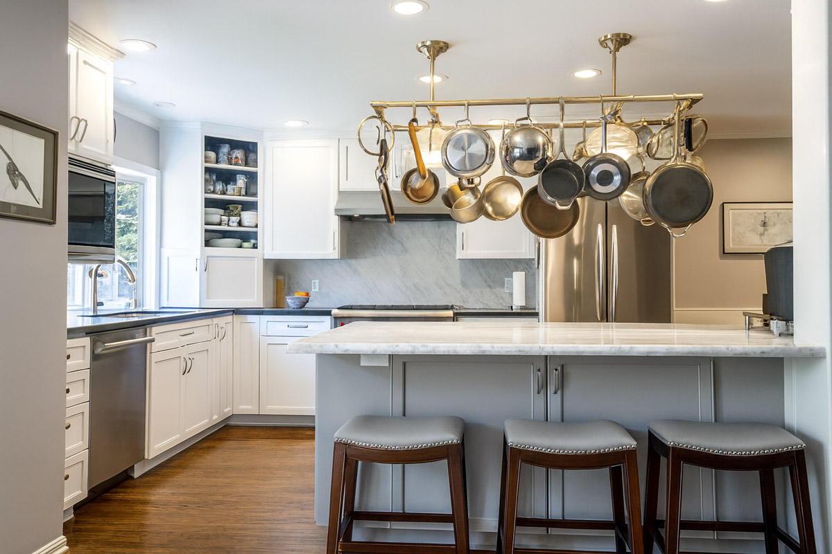 Waterfall countertops? Exotic wood? A massive island with seating for twelve?